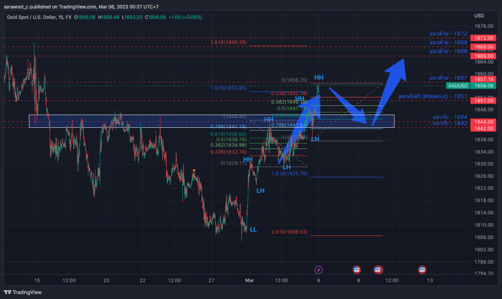 ถ้าหากกราฟไม่สามารถยืนเหนือ 1851 ได้ จะลงไปทดสอบโซนแนวรับที่ 1844/1842 (Fibonanci 61.8 / 78.6)